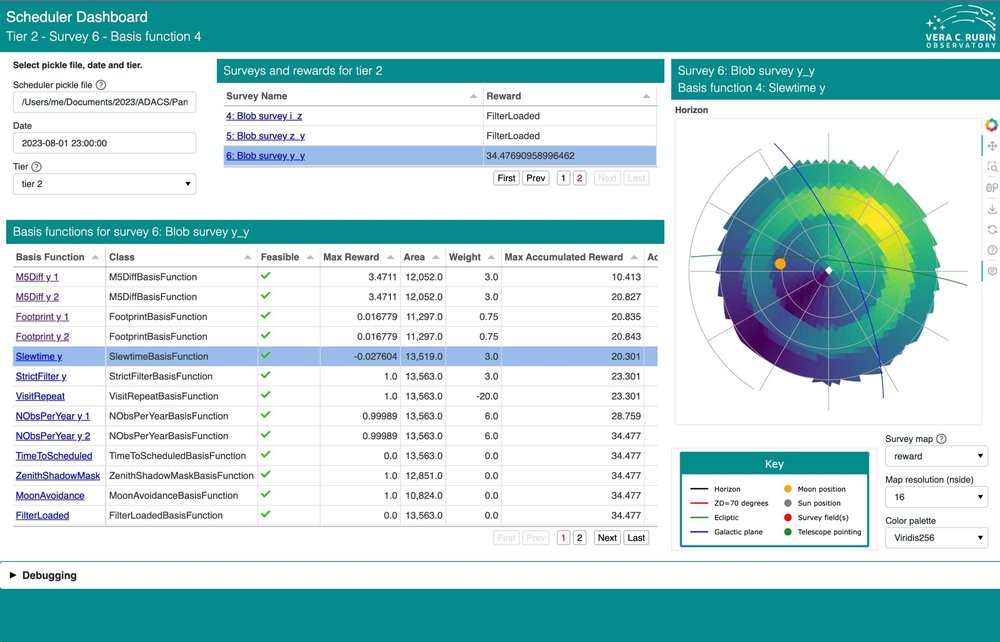 The first of my two projects involved the design and development of a scheduling dashboard to be used by the telescope operators at the Vera C. Rubin Observatory. At the time of my internship, the observatory was still under construction, with observing expected to begin in 2025. Our ADACS development team consisted of myself and one other developer, and we liaised with the Rubin science team of two North American astronomers, meeting fortnightly over Zoom.